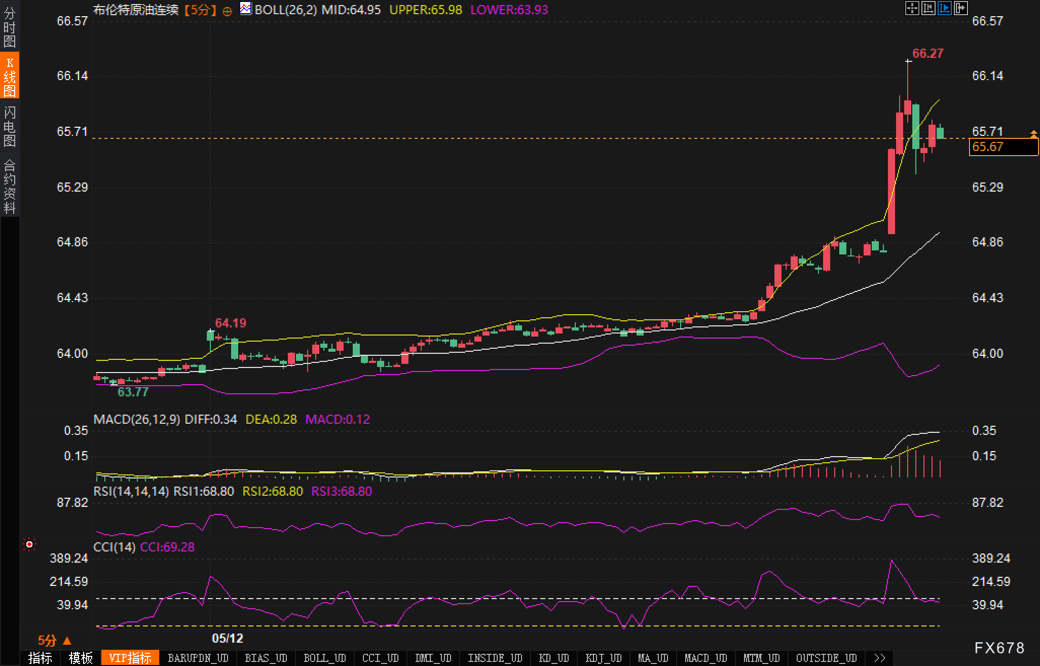 (布伦特原油5分钟图,来源易汇通)