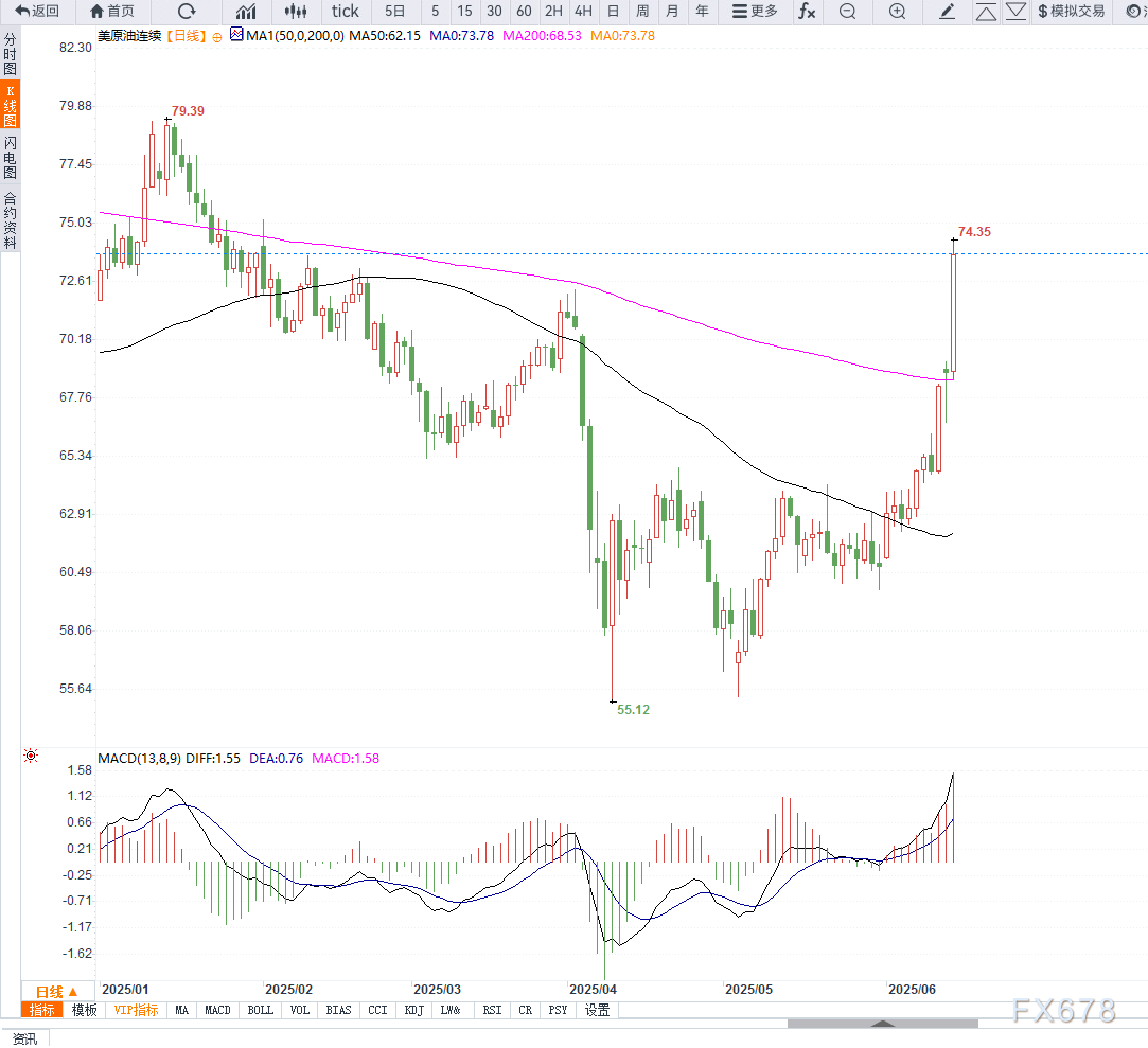 从技术面观察,美原油(WTI)日线图显示,油价在突破73美元关口后形成了明显的看涨吞没形态,同时MACD指标即将形成金叉,短期上升动能增强。