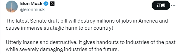 XM外汇官网登陆入口马斯克再批大而美法案:将对美国造成巨大伤害