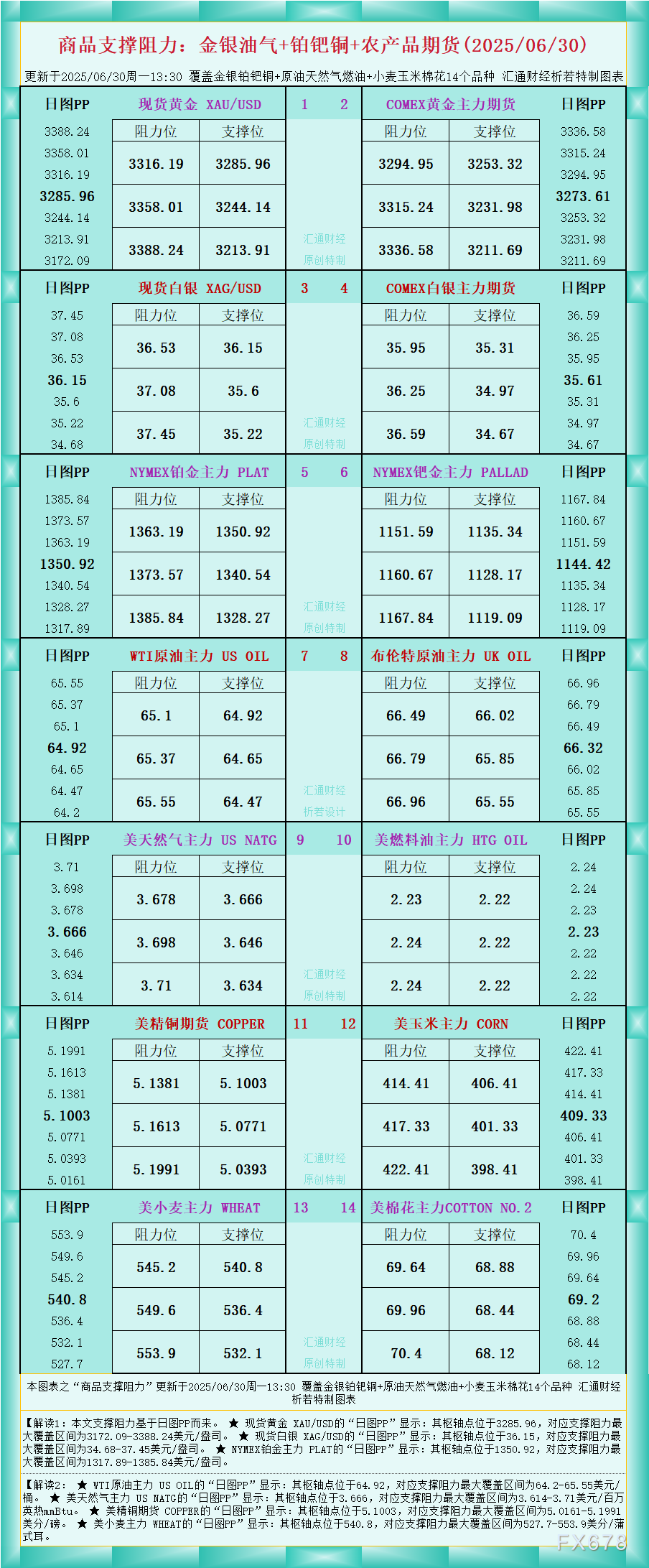 XM官网官网一张图看商品支撑阻力:金银油气+铂钯铜农产品期货(2025年6月30